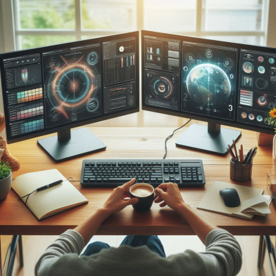 듀얼 모니터는 말 그대로 모니터를 두 개 사용하는 것을 말해요. 하나의 컴퓨터에 두 개의 모니터를 연결하면, 더 넓은 화면에서 여러 작업을 동시에 할 수 있어서 매우 편리하답니다.