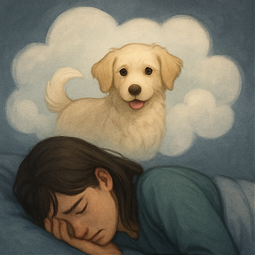 사랑했던 반려동물을 잃은 슬픔은 쉽게 없어지지 않아요. 마음 한구석에 계속 남아 있는 그리움이 꿈으로 나타나기도 해요. 그냥 보고 싶어서, 만지고 싶어서, 같이 있고 싶어서… 그런 감정이 무의식 속에서 꿈으로 나온 거죠.