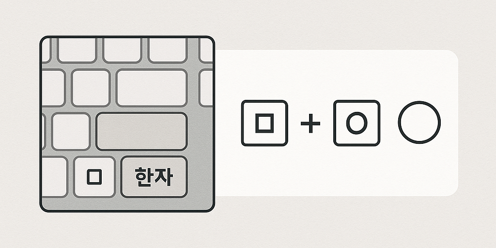 예를 들어 ‘ㅁ’ 자음 누르고 한자 키 누르면 ■, □, ○, ● 이런 기호가 줄줄이 나와요. 하나 골라서 Enter만 누르면 끝!