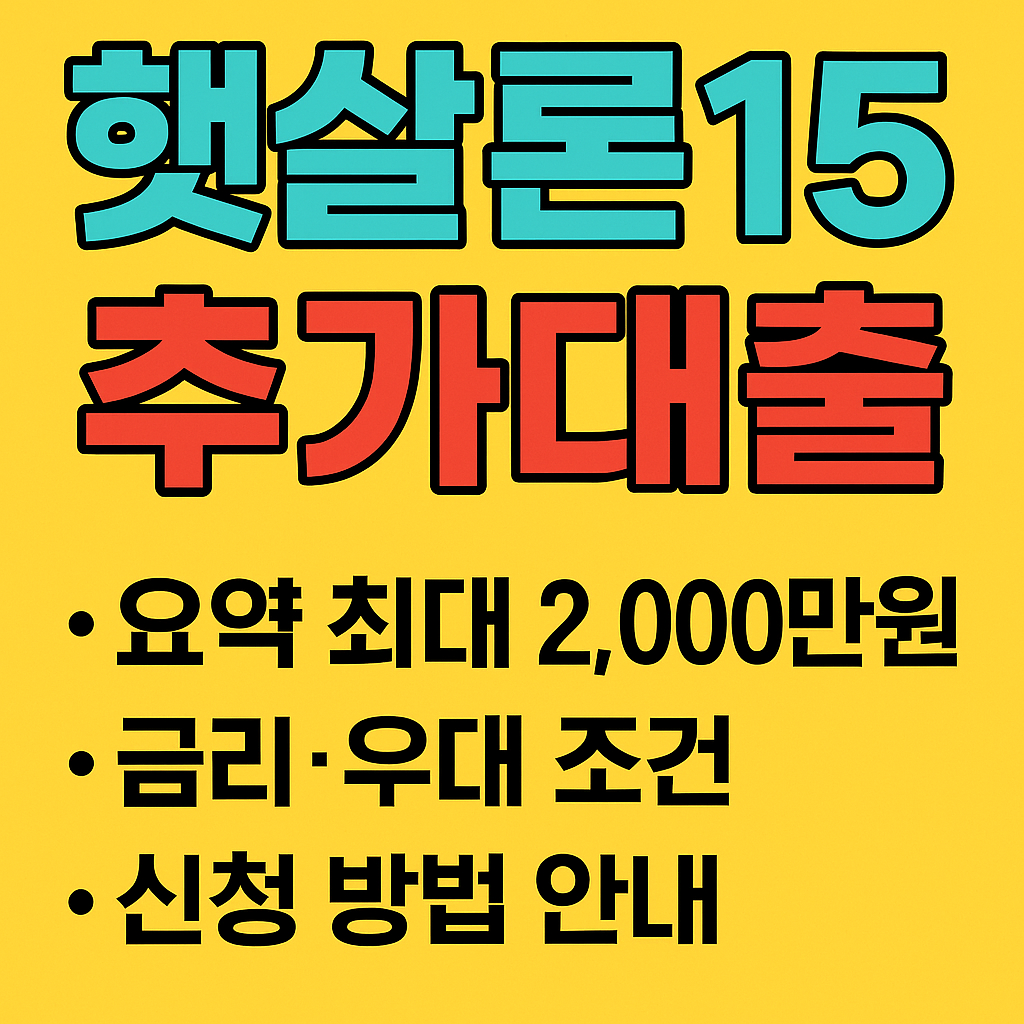 - 추가대출을 받기 위해서는 기존 햇살론15 대출을 성실하게 6개월 이상 상환한 실적이 있어야 하고, 연체가 없어야 합니다 .