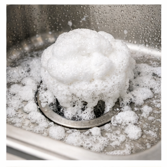 과탄산소다는 물과 만나면 산소를 발생시키는 성질이 있습니다. 이때 생기는 미세한 산소 기포가 배수구 벽면에 달라붙은 기름때와 음식물 찌꺼기를 들뜨게 만들어 자연스럽게 분리시켜 줍니다.